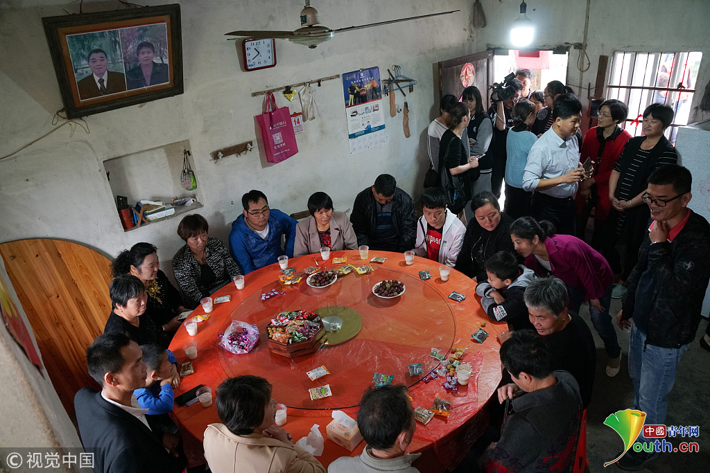 2018年10月14日,浙江嘉興嘉善縣陶莊,二姐何好妹一家擠滿了來看熱鬧的人。圖片作者:田建明