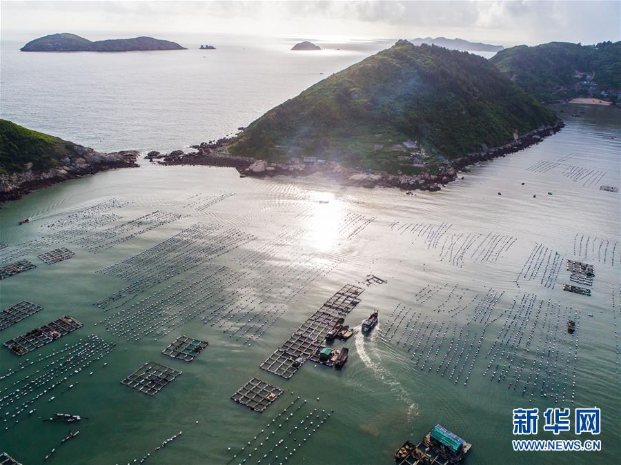 8月19日,空中俯瞰南麂島海域內(nèi)的“海上牧場”養(yǎng)殖區(qū)(無人機(jī)拍攝)。南麂島位于浙江東南海域,水質(zhì)好,水溫、鹽度都適合大黃魚等養(yǎng)殖魚類的生長繁殖,因此當(dāng)?shù)氐乃a(chǎn)品也一直保持了較高的品質(zhì)和口碑。進(jìn)入8月,浙江省溫州市平陽縣南麂鎮(zhèn)海域上大片的大黃魚、貽貝等特色海產(chǎn)品養(yǎng)殖區(qū)域迎來豐收季節(jié),養(yǎng)殖戶們駕駛漁船在養(yǎng)殖區(qū)海域進(jìn)行打撈收獲,在碧海藍(lán)天下構(gòu)成了一幅“海上牧場”的美麗豐收景象。近年來,南麂鎮(zhèn)政府引導(dǎo)漁民養(yǎng)殖戶充分發(fā)揮“靠海吃?!钡馁Y源優(yōu)勢,大力發(fā)展海洋養(yǎng)殖經(jīng)濟(jì)和海島旅游經(jīng)濟(jì),實(shí)現(xiàn)了南麂由“生態(tài)美”向“產(chǎn)業(yè)美”,“產(chǎn)業(yè)美”向“經(jīng)濟(jì)美”的轉(zhuǎn)變。同時該鎮(zhèn)堅(jiān)持以大黃魚、貽貝等為特色產(chǎn)業(yè)支撐,精準(zhǔn)發(fā)展高效海洋養(yǎng)殖業(yè),重點(diǎn)培養(yǎng)一批新型職業(yè)漁民,依靠專業(yè)技術(shù)支持,實(shí)現(xiàn)深海仿生養(yǎng)殖,讓好生態(tài)造就好品質(zhì),重點(diǎn)打造南麂養(yǎng)殖品牌,組建營銷網(wǎng)絡(luò),拓展特色海產(chǎn)品市場。新華社記者 徐昱攝