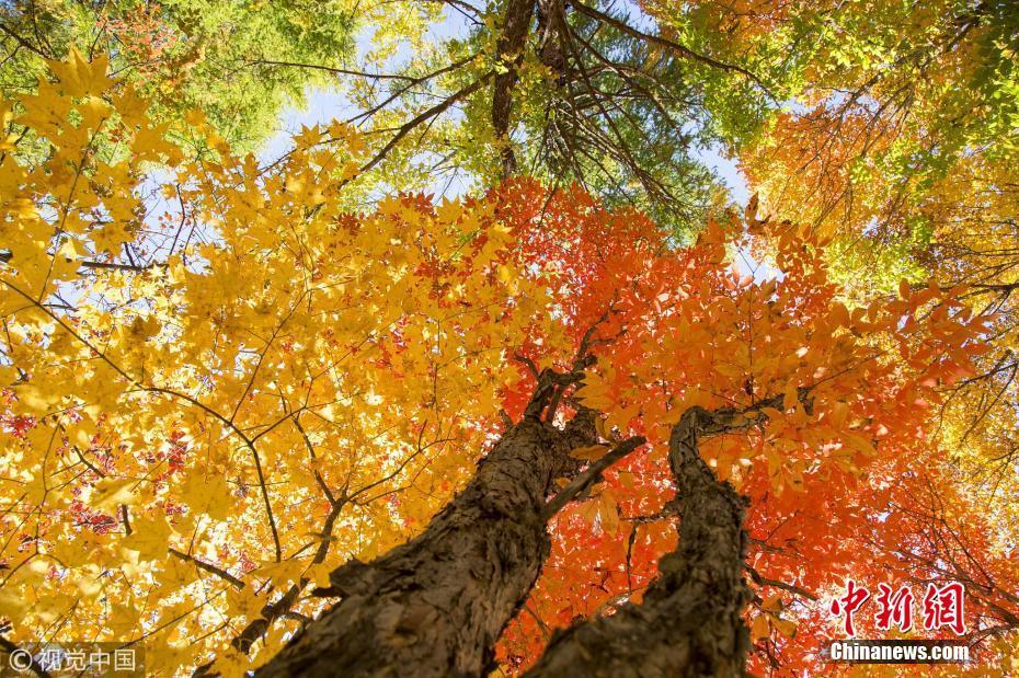 10月5日,吉林省磐石市取柴河鎮(zhèn)西大地村雞爪子溝的楓葉經(jīng)過秋霜的洗禮進入了最佳觀賞期,農(nóng)民在山上賣土特產(chǎn)。 圖片來源:視覺中國