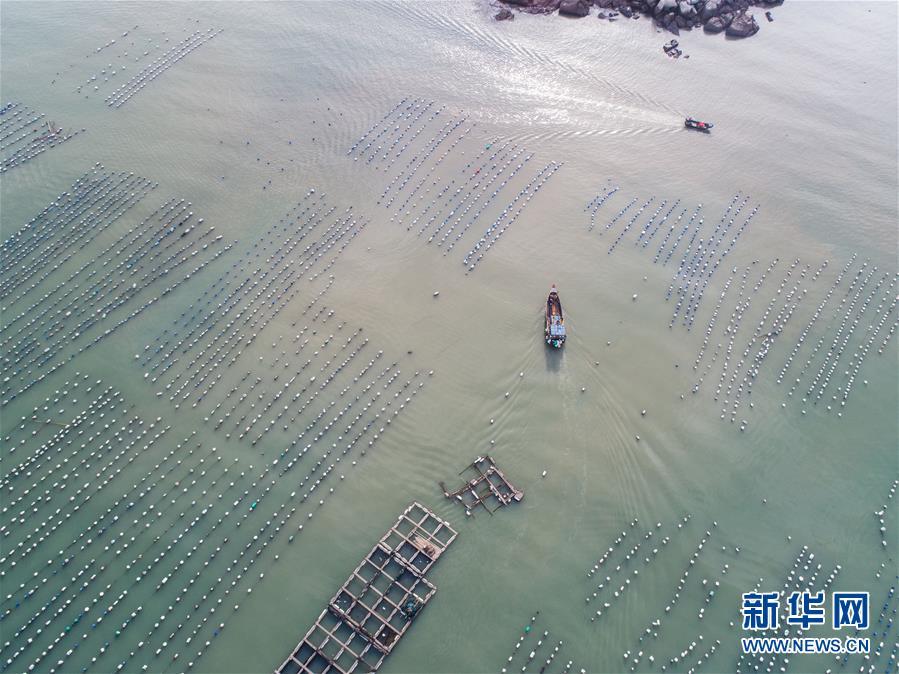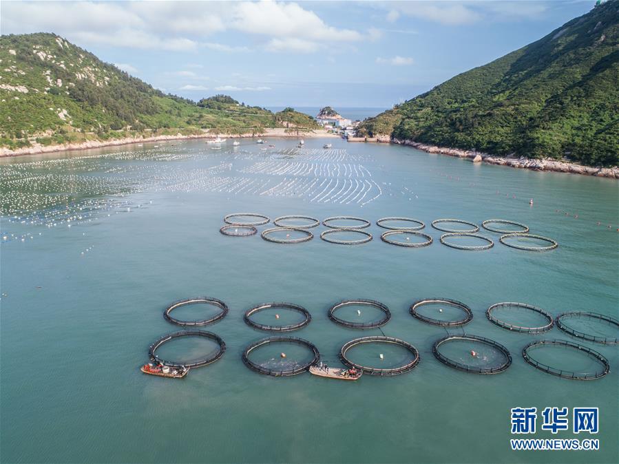 8月18日,南麂島海域的“海上牧場”養(yǎng)殖區(qū)內(nèi),漁民準(zhǔn)備進(jìn)行養(yǎng)殖作業(yè)(無人機(jī)拍攝)。進(jìn)入8月,浙江省溫州市平陽縣南麂鎮(zhèn)海域上大片的大黃魚、貽貝等特色海產(chǎn)品養(yǎng)殖區(qū)域迎來豐收季節(jié),養(yǎng)殖戶們駕駛漁船在養(yǎng)殖區(qū)海域進(jìn)行打撈收獲,在碧海藍(lán)天下構(gòu)成了一幅“海上牧場”的美麗豐收景象。近年來,南麂鎮(zhèn)政府引導(dǎo)漁民養(yǎng)殖戶充分發(fā)揮“靠海吃?!钡馁Y源優(yōu)勢,大力發(fā)展海洋養(yǎng)殖經(jīng)濟(jì)和海島旅游經(jīng)濟(jì),實現(xiàn)了南麂由“生態(tài)美”向“產(chǎn)業(yè)美”,“產(chǎn)業(yè)美”向“經(jīng)濟(jì)美”的轉(zhuǎn)變。同時該鎮(zhèn)堅持以大黃魚、貽貝等為特色產(chǎn)業(yè)支撐,精準(zhǔn)發(fā)展高效海洋養(yǎng)殖業(yè),重點(diǎn)培養(yǎng)一批新型職業(yè)漁民,依靠專業(yè)技術(shù)支持,實現(xiàn)深海仿生養(yǎng)殖,讓好生態(tài)造就好品質(zhì),重點(diǎn)打造南麂養(yǎng)殖品牌,組建營銷網(wǎng)絡(luò),拓展特色海產(chǎn)品市場。新華社記者 徐昱攝