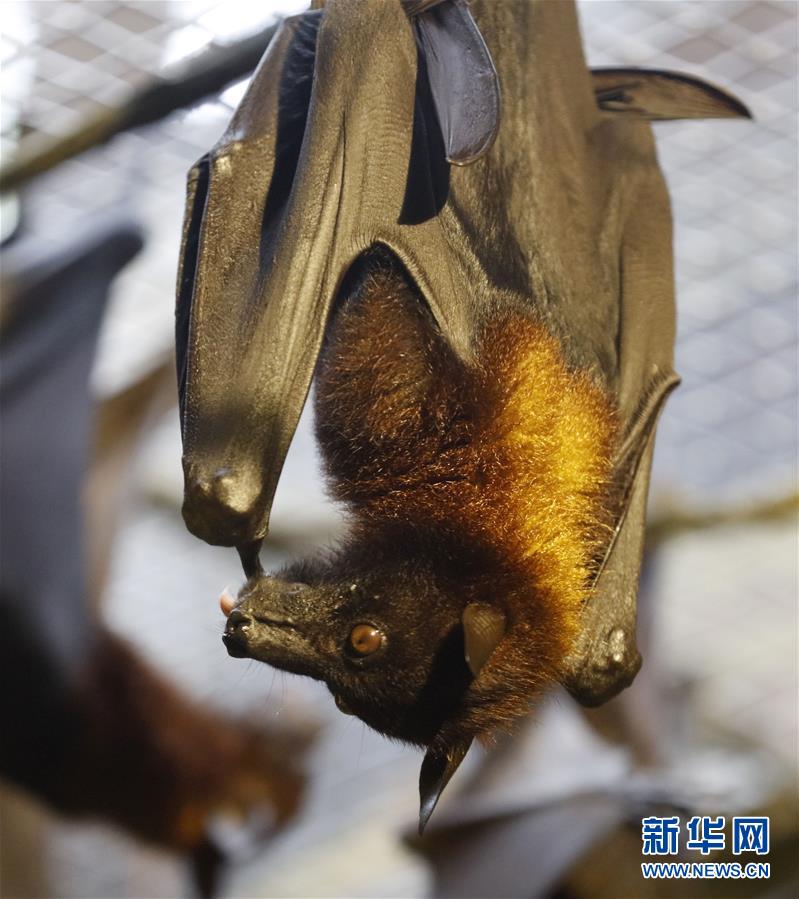 10月18日在廣州長隆野生動(dòng)物世界拍攝的馬來大狐蝠。 當(dāng)日,馬來大狐蝠在廣州長隆野生動(dòng)物世界首次展出。馬來大狐蝠體長20至25厘米,翼幅最大近兩米,主要分布在印度尼西亞與馬來西亞等地。 新華社記者 黃國保 攝