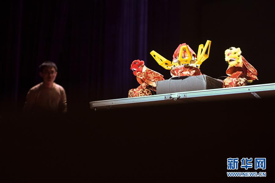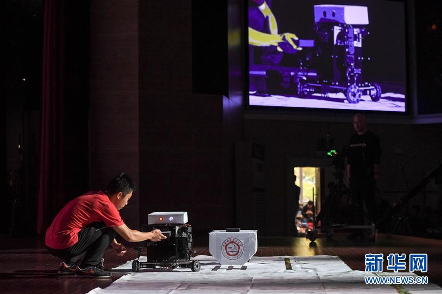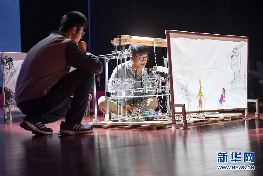 10月21日,在位于安徽合肥的中國科學(xué)技術(shù)大學(xué),“人五成影”隊(duì)帶著皮影戲機(jī)器人參加比賽。新華社記者張端攝