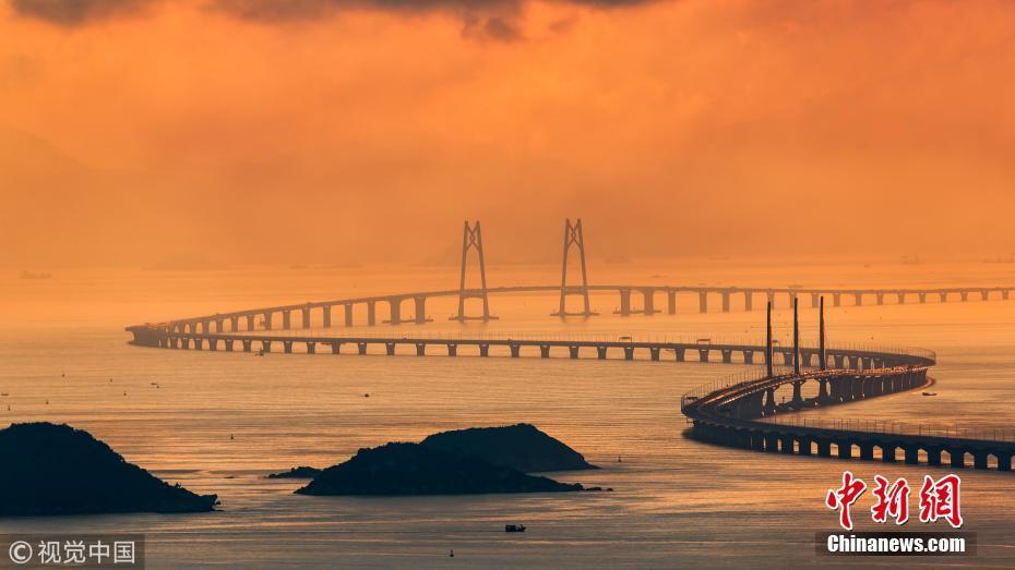 “超級(jí)工程”港珠澳大橋?qū)⒂?4日上午9時(shí)正式通車,一波美圖先睹為快。黃昆震 攝 圖片來源:視覺中國
