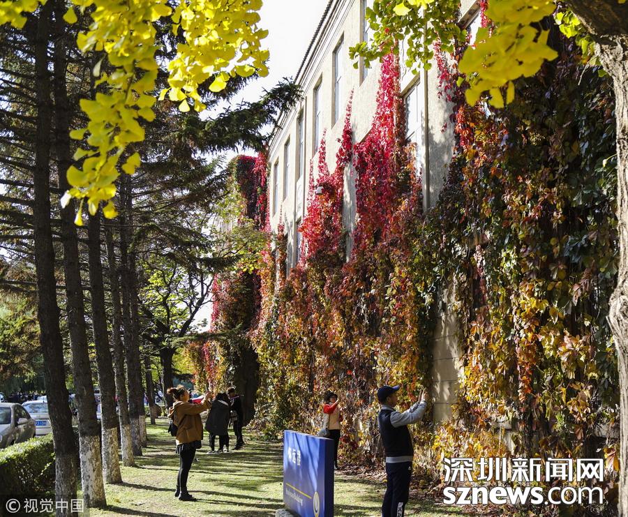 最美校園 !大學內(nèi)建筑被爬山虎包圍 滿墻火紅美如畫