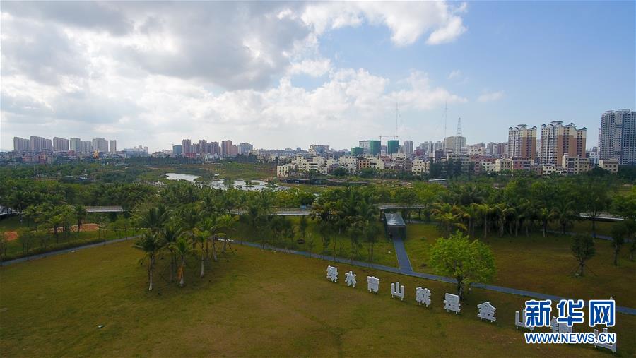 這是海口市美舍河鳳翔濕地公園一角(10月22日無人機拍攝)。 ??谑续P翔濕地公園內(nèi)流水潺潺,綠草如茵。很難想象,這個市民游客休閑散步的好去處、具有強大污水凈化功能的濕地公園,兩年前還是臭氣熏天、人們避之不及的垃圾堆填場。 把生態(tài)文明建設(shè)放到更加突出的位置,近兩年來海口市以濕地城市建設(shè)為突破口,不斷創(chuàng)新城市生態(tài)治理,著力改善生態(tài)民生,在生態(tài)文明建設(shè)上闖關(guān)探路。 新華社記者 楊冠宇 攝