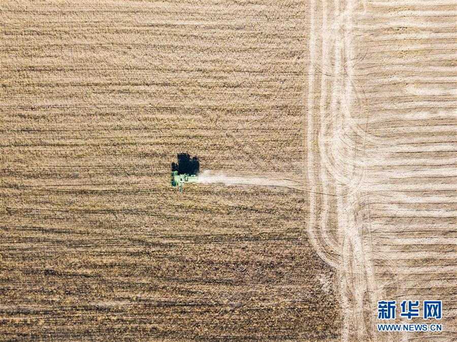 從空中俯瞰俄羅斯猶太自治州比羅比詹市附近的大豆農(nóng)場(10月19日攝)。 新華社記者張若玄攝