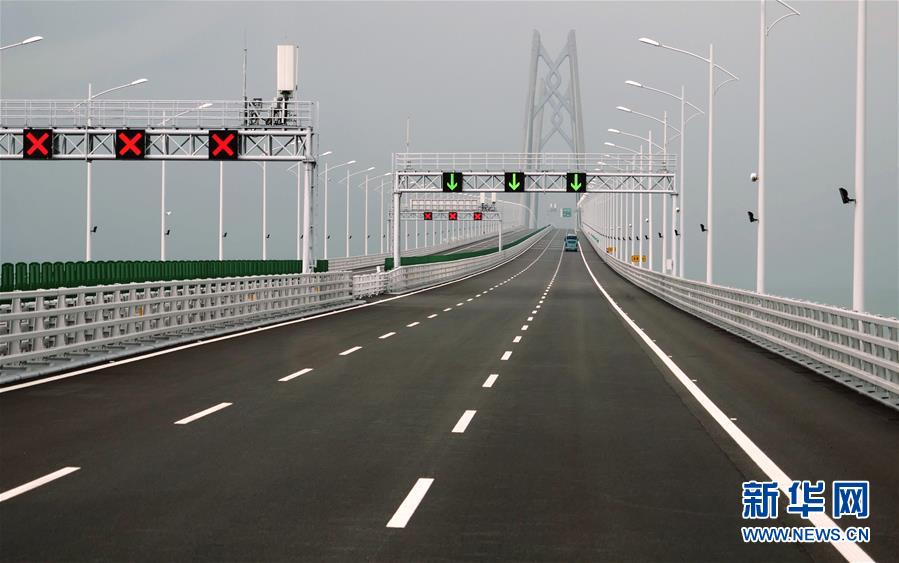 工作車輛行駛在港珠澳大橋上(2018年10月20日攝)。 金秋十月,伶仃洋上海天一色、潮聲陣陣,依傍著這片中國南海水域的城市群迎來深具意義的一天。 10月23日上午,港珠澳大橋開通儀式在廣東珠海舉行,中共中央總書記、國家主席、中央軍委主席習(xí)近平出席儀式,宣布大橋正式開通。 碧波之上,一橋飛架香港、澳門、珠海三地,以氣貫長虹的“中國跨度”,飛越滄海百年的歷史風(fēng)云,展現(xiàn)當(dāng)代中國的雄健風(fēng)采。 新華社記者梁旭攝