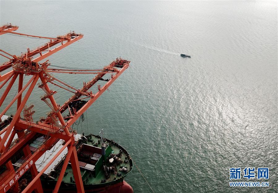 這是10月24日無人機(jī)拍攝的廣西防城港碼頭。目前防城港已建成一批鐵礦石、煤炭、硫磺、糧食、化肥、液體化工等貨種的大型專用倉儲(chǔ)和裝卸船系統(tǒng)。 新華社記者 魏海 攝