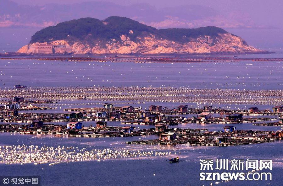 深圳新聞網(wǎng)訊 2018年10月26日,在福建連江海域上,“海上田園”網(wǎng)箱羅列,漁排上搭建的木屋錯(cuò)落成“戶”,蔚為壯觀,成為一道獨(dú)特的風(fēng)景線。福建省連江縣是中國(guó)鮑魚(yú)養(yǎng)殖第一大縣。
