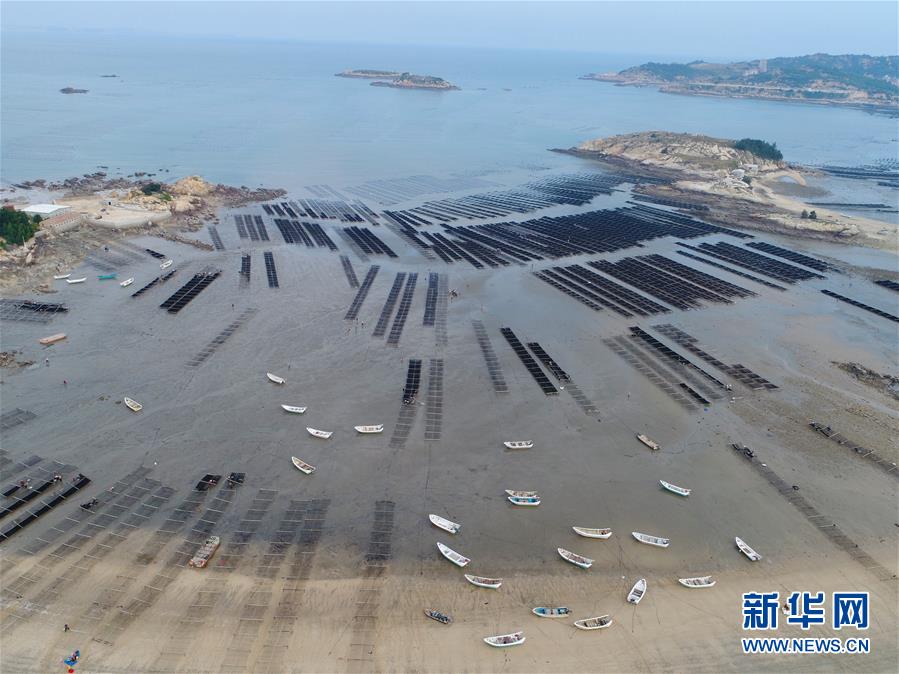 10月24日,福建莆田蔣山村村民在收獲紫菜?! ⌒氯A社記者張國(guó)俊 攝