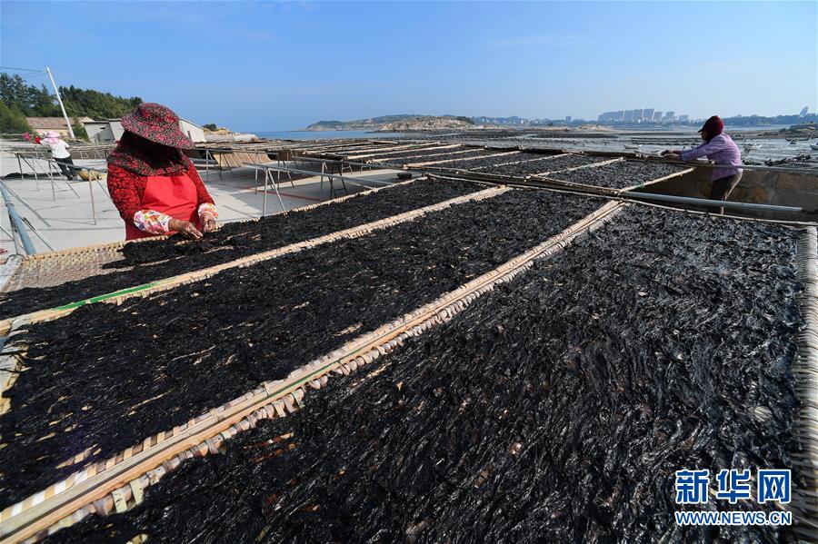 10月24日,福建莆田蔣山村村民在曬紫菜。 新華社記者張國(guó)俊 攝