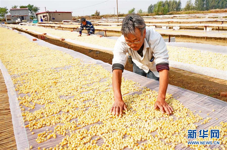 10月22日,樂(lè)亭縣姜各莊鎮(zhèn)南海濱村的養(yǎng)殖戶在晾曬扇貝柱。 近年來(lái),河北省樂(lè)亭縣通過(guò)建設(shè)海洋牧場(chǎng)科學(xué)布局養(yǎng)殖區(qū)域、采用新技術(shù)新模式提升養(yǎng)殖質(zhì)量、成立專業(yè)合作社實(shí)行集約化經(jīng)營(yíng)等措施,積極助推扇貝養(yǎng)殖加工產(chǎn)業(yè)發(fā)展,取得良好效益。據(jù)介紹,今年該縣扇貝養(yǎng)殖面積達(dá)32萬(wàn)畝,預(yù)計(jì)鮮貝產(chǎn)量達(dá)5.5萬(wàn)噸,產(chǎn)值3.8億元。 新華社記者楊世堯攝