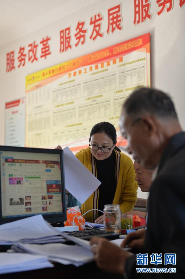 開(kāi)弦弓村婦女主任周春燕(左一)在村部和同事們一起處理村務(wù)(10月23日攝)?!?0后”周春燕是土生土長(zhǎng)的開(kāi)弦弓村村民,大學(xué)畢業(yè)后回村工作,每天活躍在村里的大街小巷。 新華社記者 尹棟遜攝
