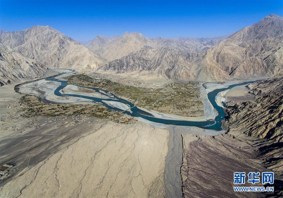 這是位于昆侖山深處的克孜勒蘇柯爾克孜自治州阿克陶縣庫(kù)斯拉甫鄉(xiāng),葉爾羌河從村莊流過(guò)(10月27日無(wú)人機(jī)拍攝)。 新華社記者 關(guān)俏俏 攝
