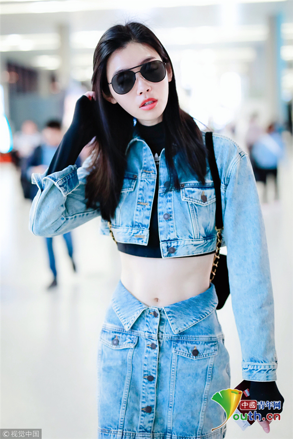奚夢瑤一身帥氣牛仔裝 露細(xì)腰長腿顯 ...