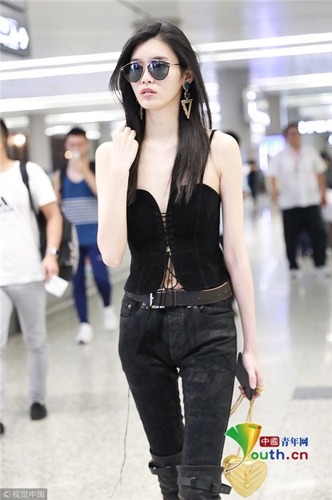 2018年7月25日,上海,奚夢瑤現(xiàn)身機場,她穿吊帶馬甲配過膝長靴,頻撩發(fā)似女特工。