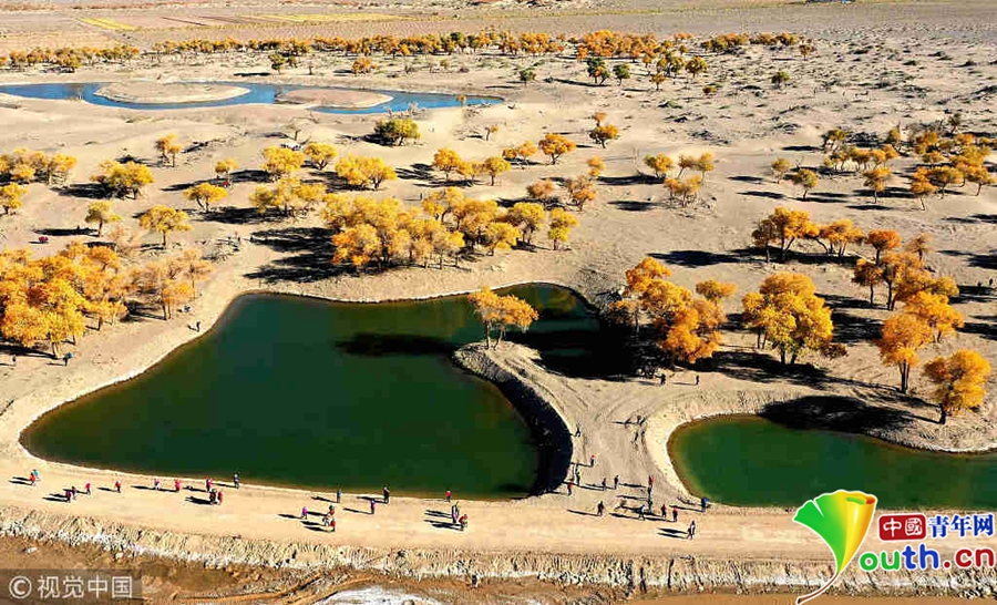 中國青年網(wǎng)北京10月9日電 2018年10月7日至8日,內(nèi)蒙古自治區(qū)阿拉善盟額濟(jì)納旗,地處巴丹吉林沙漠。額濟(jì)納河兩岸壯觀的胡楊林堪稱大漠的一顆綠色明珠,每年深秋時(shí)節(jié)的第一場秋霜過后,大片的胡楊樹葉由綠變黃,一眼望去,陽光下金色的樹葉襯著湛藍(lán)的天空于風(fēng)中婆娑起舞,鮮明的影調(diào),亮麗的色彩,令人流連忘返。