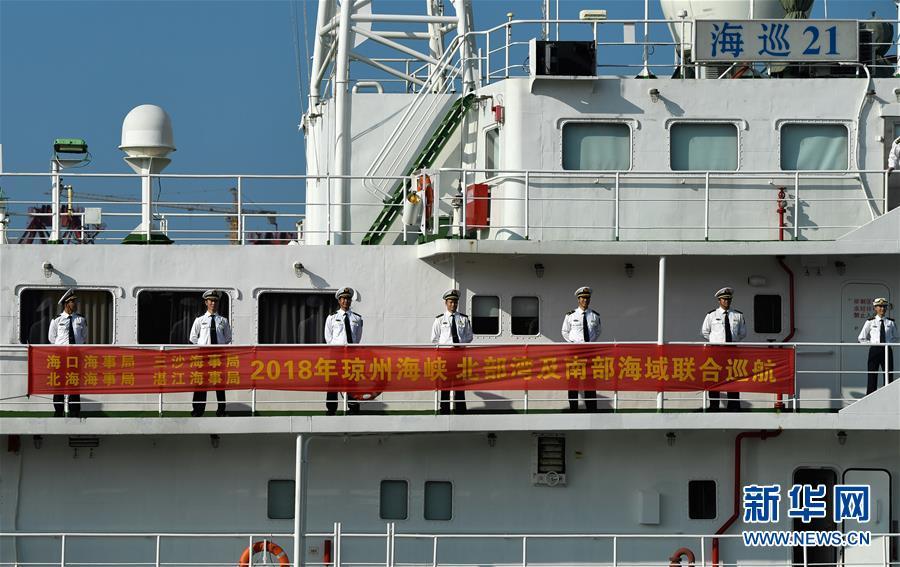 11月3日,海事執(zhí)法人員乘“海巡21”輪出發(fā)。 當日,隨著“海巡21”輪緩緩駛離海口海事監(jiān)管基地碼頭,由瓊桂粵海事部門共同開展的瓊州海峽、北部灣及環(huán)海南島水域跨轄區(qū)聯(lián)合巡航執(zhí)法活動揭開序幕。 新華社記者楊冠宇攝