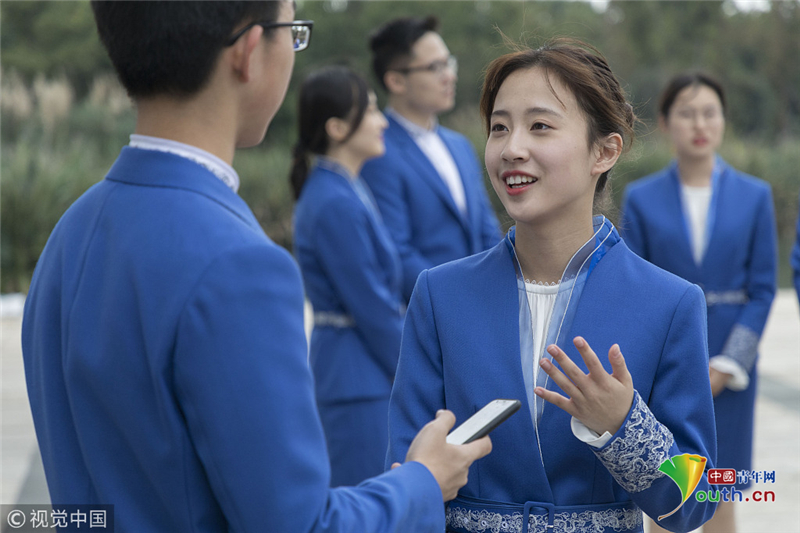 2018年11月5日,浙江嘉興,大會志愿者“小梧桐”爭分奪秒,在烏鎮(zhèn)展開緊張的實戰(zhàn)培訓(xùn)。阿凡提達/視覺中國
