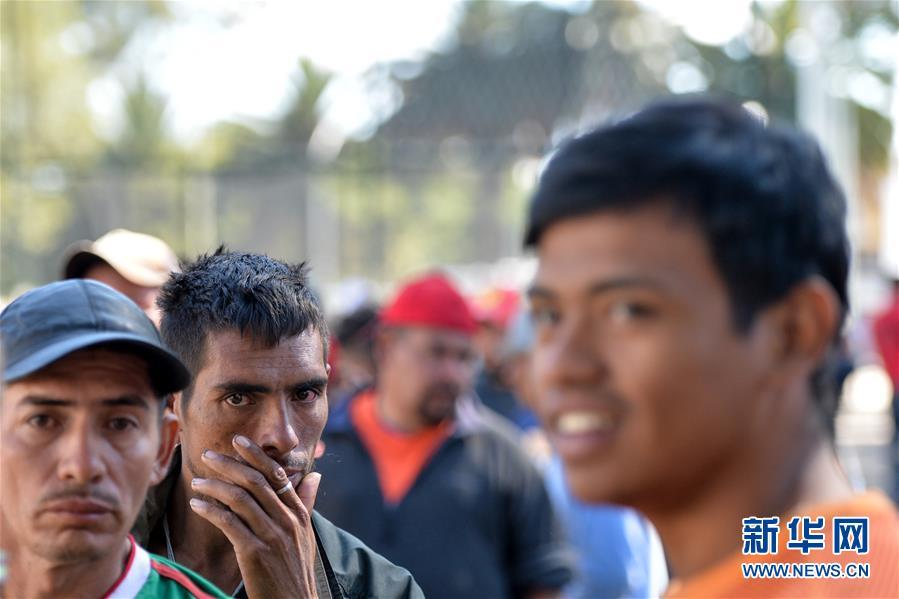 11月5日,在墨西哥首都墨西哥城,中美洲移民在臨時安置點外排隊。新華社記者辛悅衛(wèi) 攝