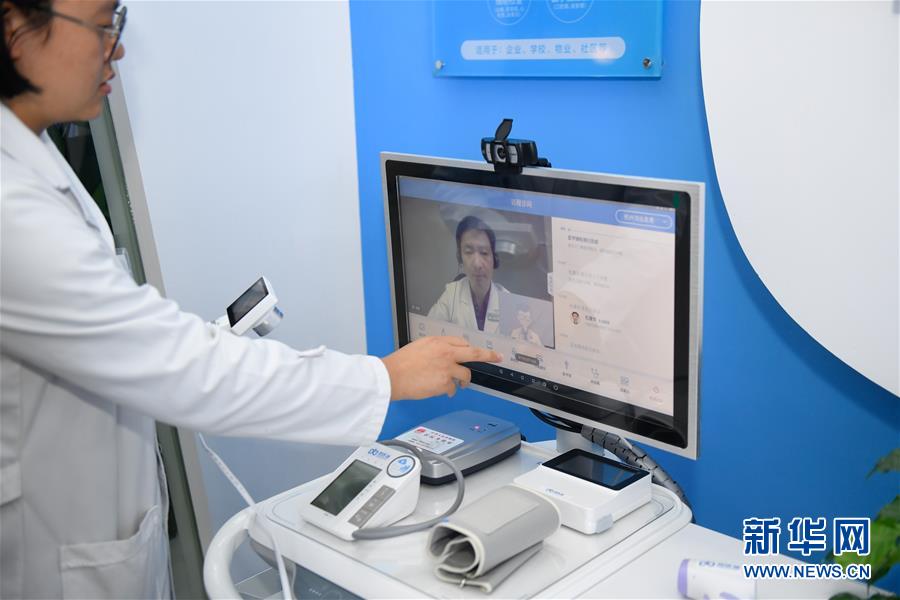 11月6日,烏鎮(zhèn)互聯(lián)網(wǎng)醫(yī)院的員工在操作“智能醫(yī)務(wù)室”與醫(yī)生的視頻連線功能。據(jù)了解,“智能醫(yī)務(wù)室”由智能移動(dòng)醫(yī)療一體機(jī)、智能藥柜以及一系列檢查設(shè)備組成,根據(jù)健康檔案和檢查結(jié)果,視頻連接家庭醫(yī)生就能解決常見的醫(yī)療健康問(wèn)題。 新華社記者黃宗治攝