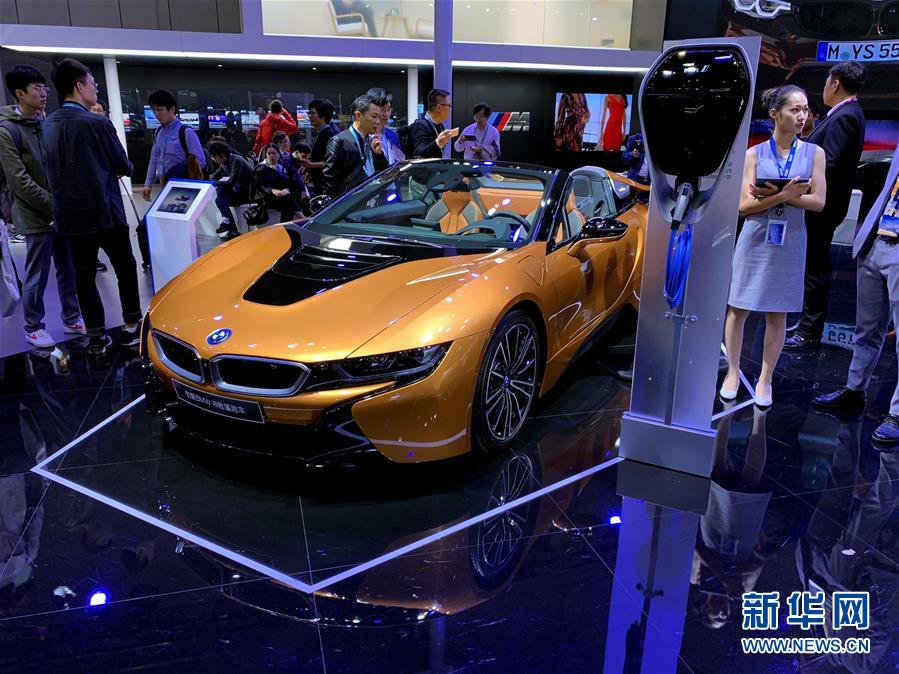 這是11月7日在汽車展區(qū)拍攝的寶馬i8混合動(dòng)力跑車。新華社記者 牛曉雷 攝