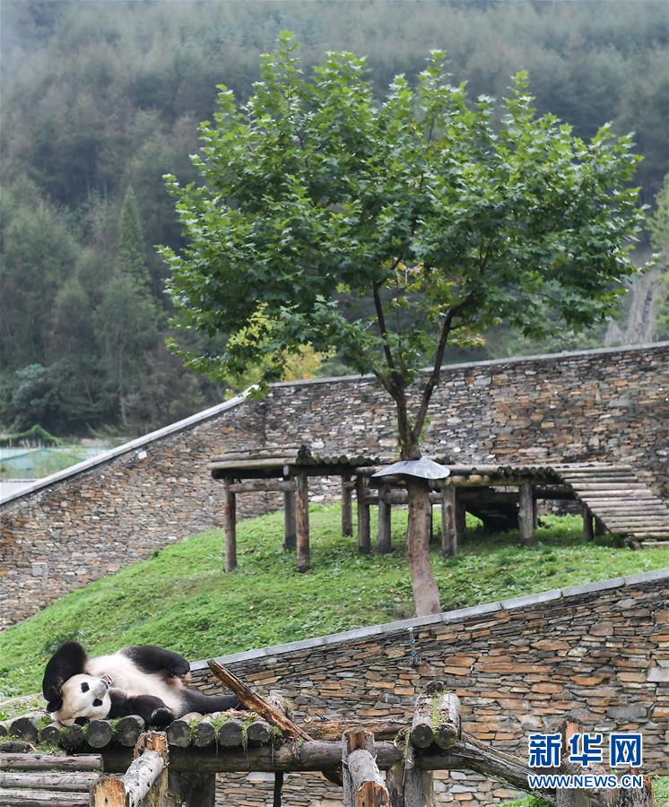 這是在中國大熊貓保護研究中心臥龍神樹坪基地拍攝的大熊貓(2017年9月23日攝)。 新華社記者 薛玉斌 攝
