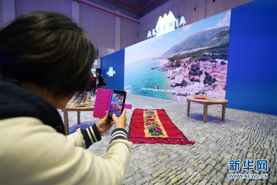 11月7日,在阿爾巴尼亞展區(qū),一名參觀者拍攝當(dāng)?shù)厣a(chǎn)的地毯。 中國(guó)國(guó)際進(jìn)口博覽會(huì)11月5日在上海開幕。國(guó)家貿(mào)易投資綜合展(國(guó)家展)是中國(guó)國(guó)際進(jìn)口博覽會(huì)的重要內(nèi)容,共有82個(gè)國(guó)家、3個(gè)國(guó)際組織設(shè)立71個(gè)展臺(tái)。 新華社記者 王天聰 攝
