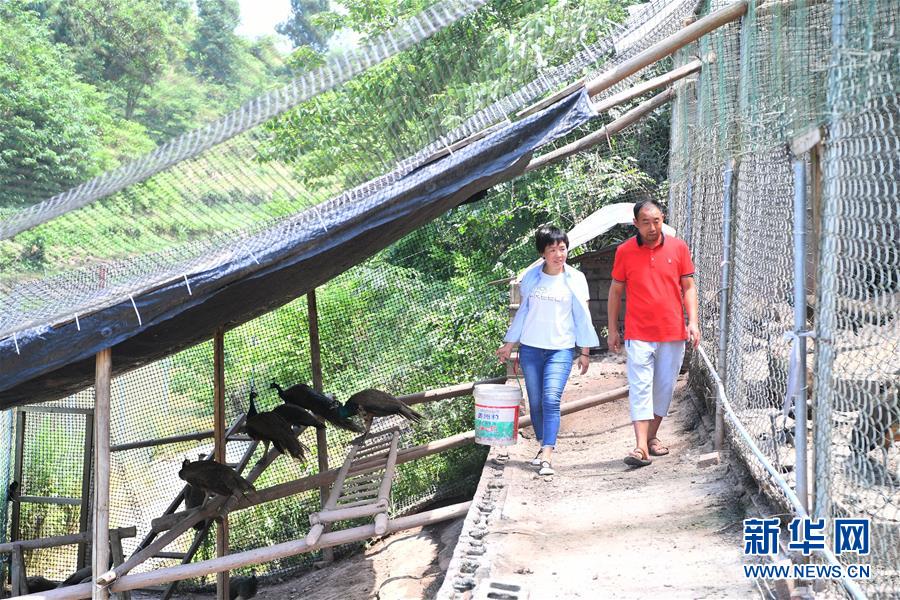 5月16日,在重慶市銅梁區(qū)永嘉鎮(zhèn)高龍村,閻仁兵(右)和妻子張榮蘋在養(yǎng)殖場內(nèi)巡視藍(lán)孔雀生長情況。 2010年,在外從事過家電、服裝、汽車配件等生意的閻仁兵、張榮蘋夫婦回到重慶市銅梁區(qū)永嘉鎮(zhèn)高龍村老家創(chuàng)業(yè)。經(jīng)過認(rèn)真的市場調(diào)研和學(xué)習(xí),他們開始從事藍(lán)孔雀養(yǎng)殖,并不斷提升養(yǎng)殖技術(shù)、擴(kuò)大養(yǎng)殖規(guī)模、拓展藍(lán)孔雀產(chǎn)業(yè)鏈。 通過不懈努力,他們養(yǎng)殖的藍(lán)孔雀數(shù)量已達(dá)到3000多只,除了銷售藍(lán)孔雀及其種苗外,還進(jìn)行了孔雀蛋、孔雀標(biāo)本、孔雀羽毛服裝、孔雀羽毛飾品等的生產(chǎn)和銷售。2017年,夫妻倆通過藍(lán)孔雀產(chǎn)業(yè),獲得了500多萬元的營業(yè)收入。 目前,夫妻倆正依托藍(lán)孔雀養(yǎng)殖基地及周邊優(yōu)美的自然風(fēng)光,打造“孔雀休閑山莊”,將藍(lán)孔雀產(chǎn)業(yè)和鄉(xiāng)村旅游結(jié)合起來,進(jìn)一步提高經(jīng)濟(jì)效益?!俺俗约簰赍X,我們也希望能夠帶動父老鄉(xiāng)親一起致富奔小康。”閻仁兵說。 新華社記者 王全超 攝