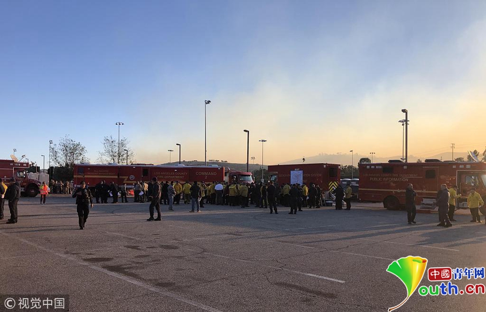 圖為文圖拉郡火場附近多輛消防車集結(jié)。