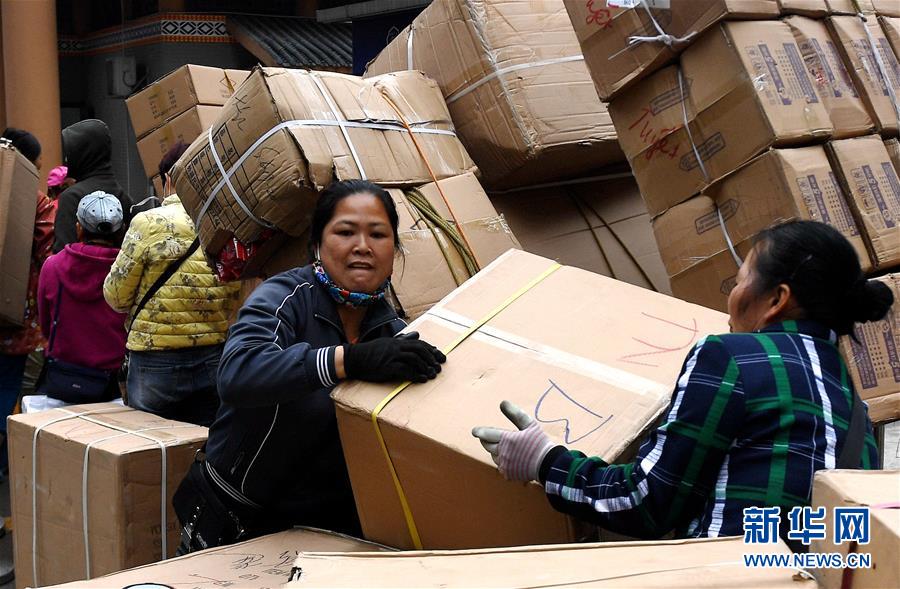 人們?cè)趶V西憑祥市浦寨邊貿(mào)區(qū)搬運(yùn)貨品(1月16日攝)。新華社記者 張愛林 攝