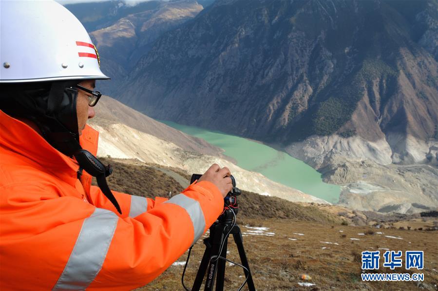 11月12日,西藏昌都市消防隊員從高點(diǎn)觀察泄流情況。新華社記者 堅贊 攝