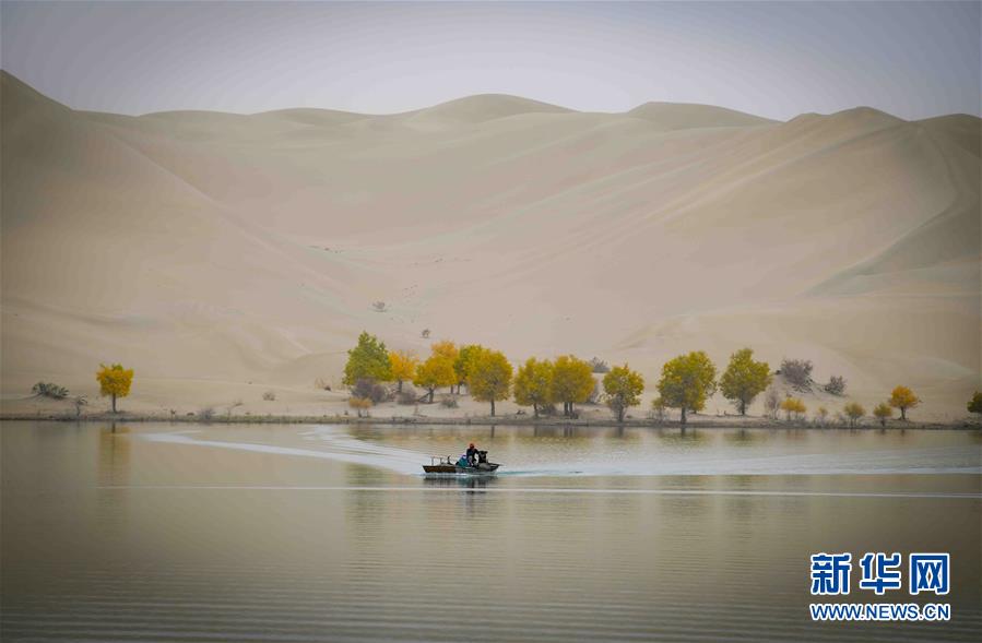 在位于新疆巴音郭楞蒙古自治州尉犁縣的一處名叫“羅布湖”的海子里,漁民在捕魚(yú)(10月17日攝)。 新華社記者 趙戈 攝