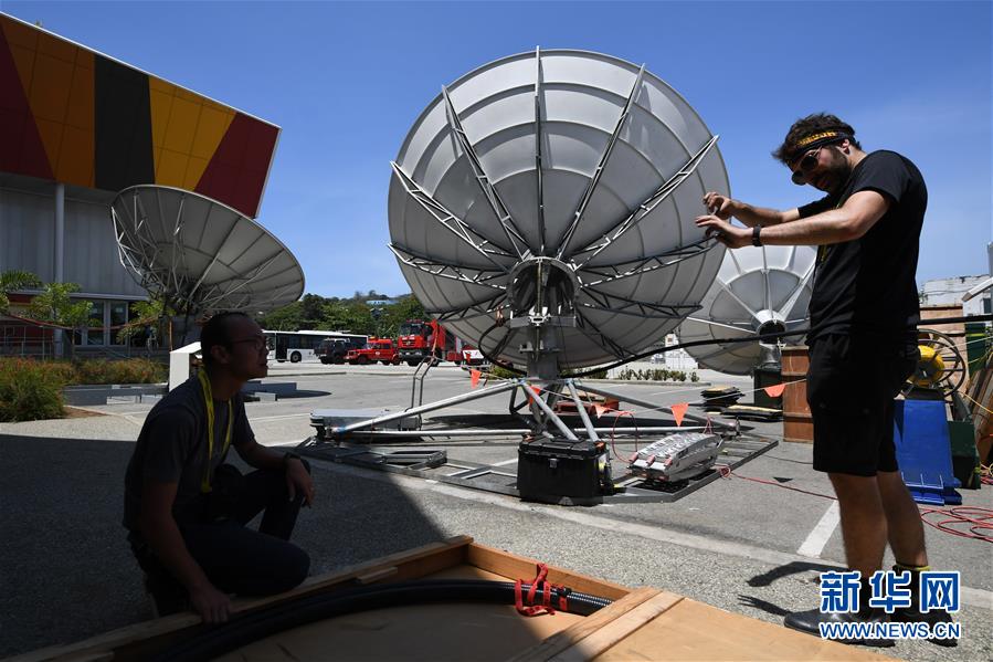 11月13日,工作人員在巴布亞新幾內(nèi)亞首都莫爾茲比港的APEC國際媒體中心安裝衛(wèi)星設(shè)備。 新華社記者呂小煒攝