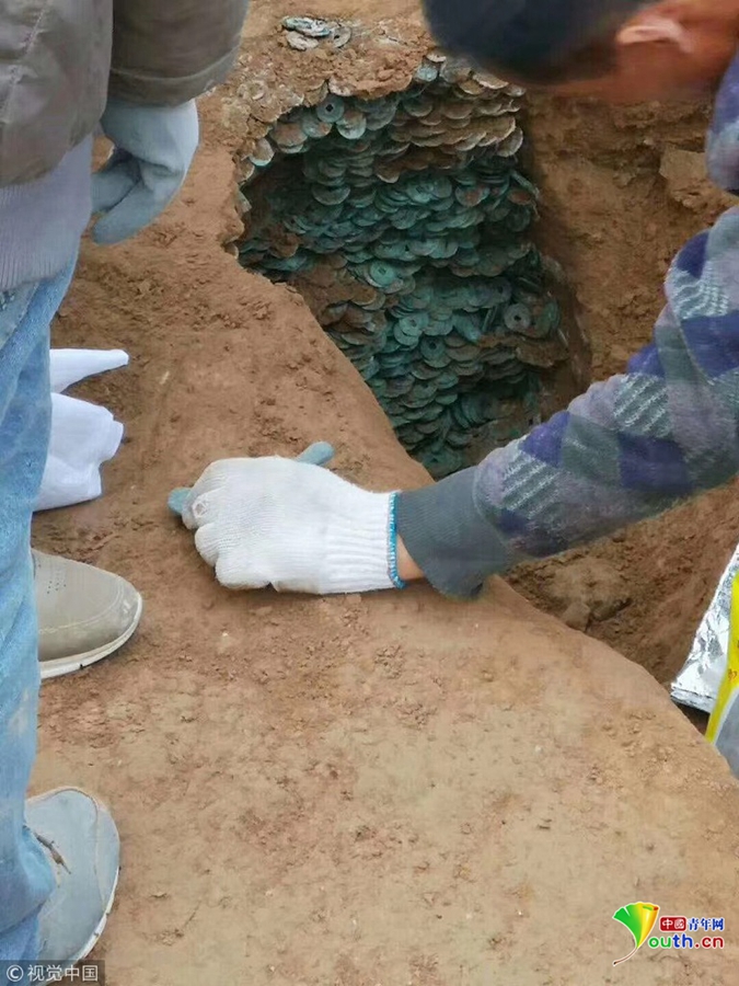 陜西渭南一工地發(fā)現(xiàn)古幣 共重920斤約10萬枚
