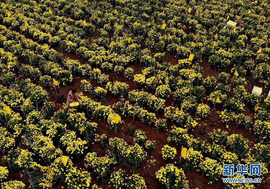 11月14日,在河南省內(nèi)鄉(xiāng)縣乍曲鎮(zhèn)水溝村千畝酈邑貢菊基地,農(nóng)戶在采摘菊花(無人機(jī)拍攝)。 近年來,河南省內(nèi)鄉(xiāng)縣依托資源優(yōu)勢(shì),把發(fā)展特色農(nóng)業(yè)作為精準(zhǔn)扶貧的重要舉措,采取“公司+合作社+農(nóng)戶”的方式,招引農(nóng)業(yè)龍頭企業(yè)發(fā)展菊花種植產(chǎn)業(yè),把菊花加工成茶飲、藥材等高附加值產(chǎn)品,累計(jì)帶動(dòng)150余戶貧困戶就業(yè)增收。 新華社記者 李安 攝