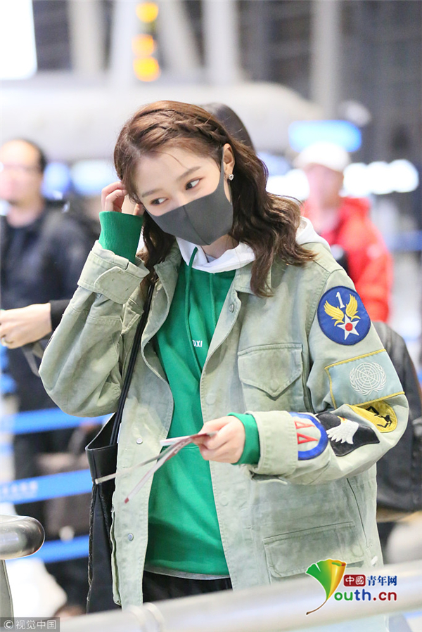 關(guān)曉彤穿男友風(fēng)外套酷中帶甜 摘口罩露清純美貌