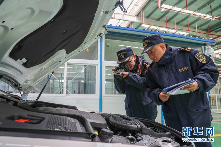 11月19日,重慶海關(guān)的工作人員在口岸車檢中心對首趟中歐班列商品車專用車運輸國際班列運輸?shù)倪M口整車進行查驗。