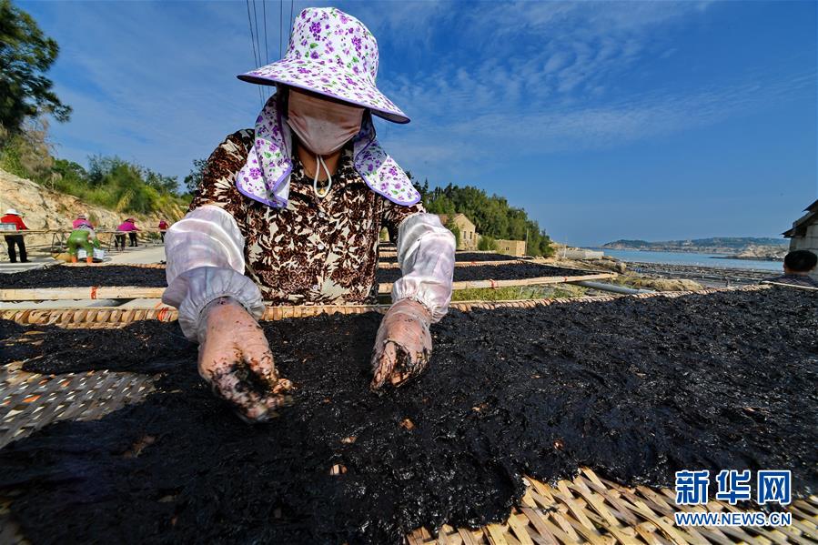 10月24日,福建莆田蔣山村村民在曬紫菜。  新華社記者張國俊 攝