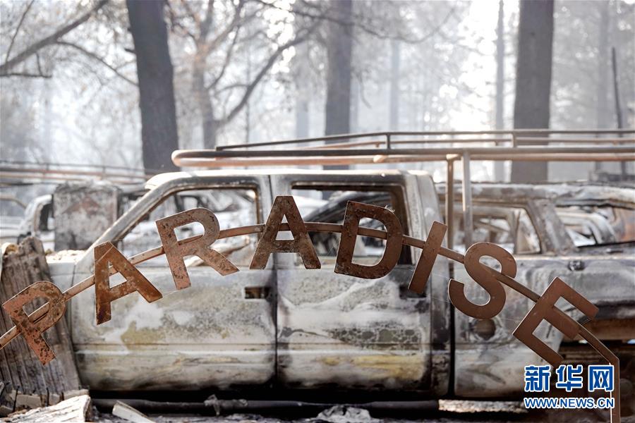 這是11月19日在美國加利福尼亞州比尤特縣天堂鎮(zhèn)拍攝的車輛殘骸和房屋廢墟。新華社記者吳曉凌攝