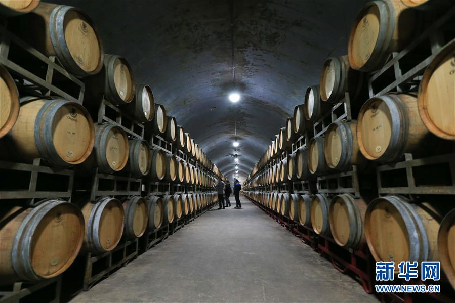 參觀者在山東煙臺(tái)張?jiān)>莆幕┪镳^的百年地下酒窖參觀(11月15日攝)。新華社記者王南攝