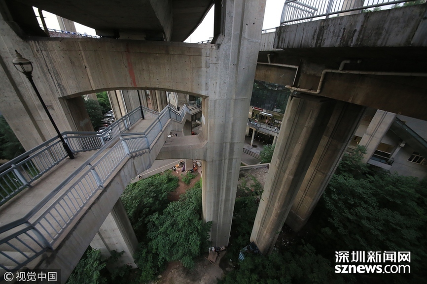 2018年5月29日,重慶,魔幻重慶又雙叒叕放大招!還有一個(gè)獨(dú)特的亮點(diǎn),重慶軌道交通3號(hào)線(xiàn)銅元局站,出口由一段長(zhǎng)梯銜接上方立交橋和下方的路面,與全國(guó)最高城市立交橋蘇家壩立交組成了獨(dú)特風(fēng)景,許多游客專(zhuān)門(mén)趕來(lái)拍照。