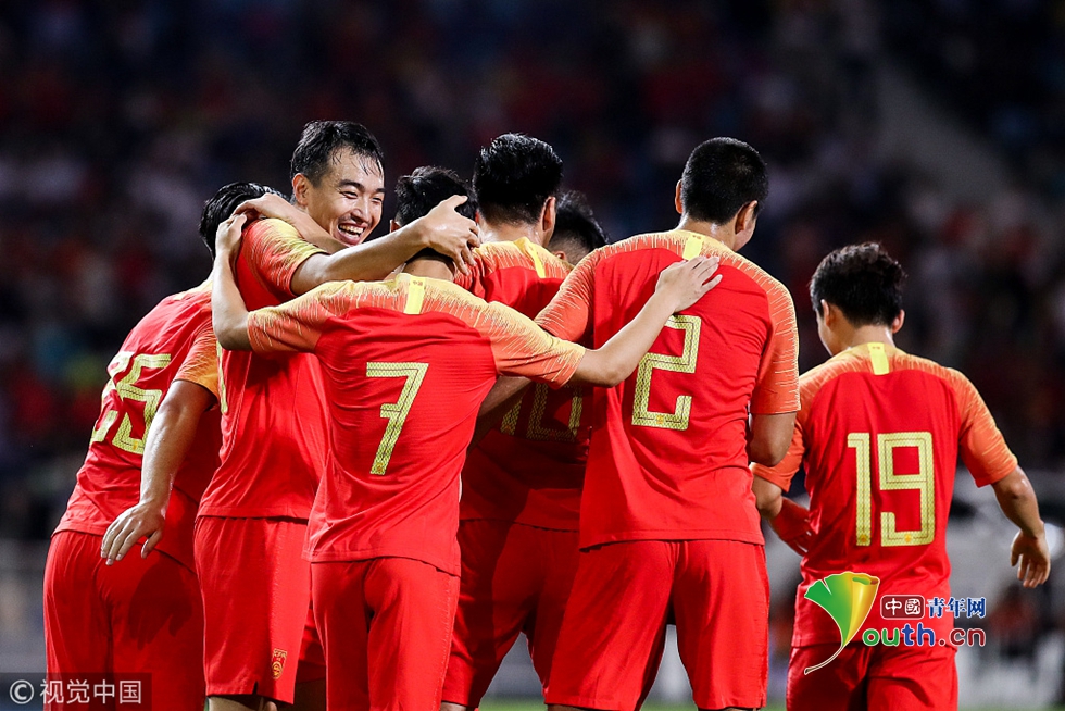 國足將士慶祝馮瀟霆進球 圖片作者:null