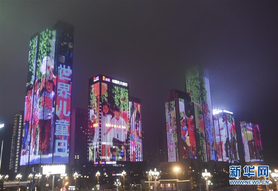 11月20日,貴陽市舉辦世界兒童日主題活動,觀山湖區(qū)金融城的大樓被點亮。 新華社記者 陶亮 攝