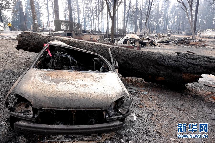 這是11月20日在美國(guó)加利福尼亞州比尤特縣天堂鎮(zhèn)拍攝的山火廢墟。