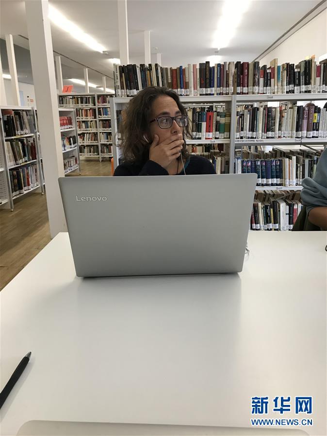 2018年10月29日,一名市民在西班牙馬德里孔德·杜克圖書館內(nèi)使用聯(lián)想電腦。新華社記者郭求達(dá)攝
