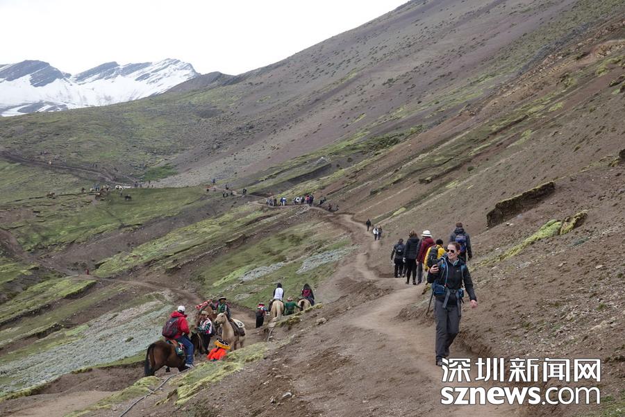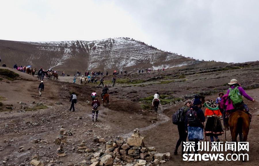 深圳新聞網(wǎng)訊 彩虹山被當(dāng)?shù)厝朔Q為維昆尼卡。深藏于秘魯庫斯科古城附近的安第斯山脈之中,多年來它一直隱藏在冰雪之下,據(jù)說是因?yàn)闇厥倚?yīng),雪線升高露出真容,才于2016年被發(fā)現(xiàn),并迅速成為世界知名景點(diǎn)。這里可以觀賞到的還有冰川、高山草甸、羊駝以及當(dāng)?shù)厣贁?shù)民族的風(fēng)情。李仁奇攝