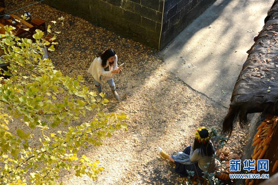 游客在騰沖“銀杏村”游玩、拍照(11月20日攝)。新華社記者 林碧鋒 攝