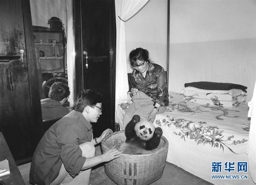 新華社記者金勖琪1984年拍攝的四川平武縣林業(yè)局的助理工程師鐘肇敏(左)一家把一頭受病餓威脅的熊貓幼仔“龍龍”收留在家里精心喂養(yǎng)。大熊貓,古老的物種,世界級(jí)“萌寵”。有一位84歲的老人,四十年前曾身挎相機(jī)與熊貓親密接觸六年多,公開發(fā)表了一千多張熊貓照片,把熊貓介紹給全球的讀者,被國(guó)內(nèi)外的朋友親切地稱為“熊貓小姐”。她就是金勖琪,新華社第一代熊貓攝影師。新華社記者 張超群 攝