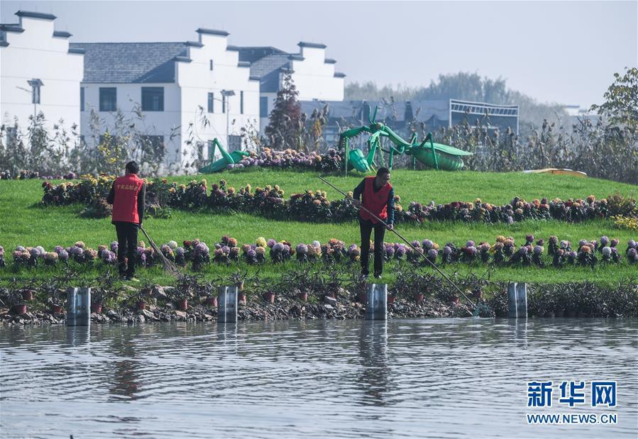 11月28日,林城鎮(zhèn)北湯村河長黃雙喜(右)在施家邊河打撈水面漂浮物。近年來,北湯村全面推進“五水共治”,停止河道內(nèi)的水產(chǎn)養(yǎng)殖,并進行河道清淤,整治周邊環(huán)境,另外還結(jié)合北湯生態(tài)園旅游項目,發(fā)展旅游經(jīng)濟,打造水上娛樂設(shè)施。現(xiàn)在北湯村施家邊河道水質(zhì)清澈,環(huán)境秀美,每年為北湯村吸引游客18萬人次。 新華社記者 徐昱 攝